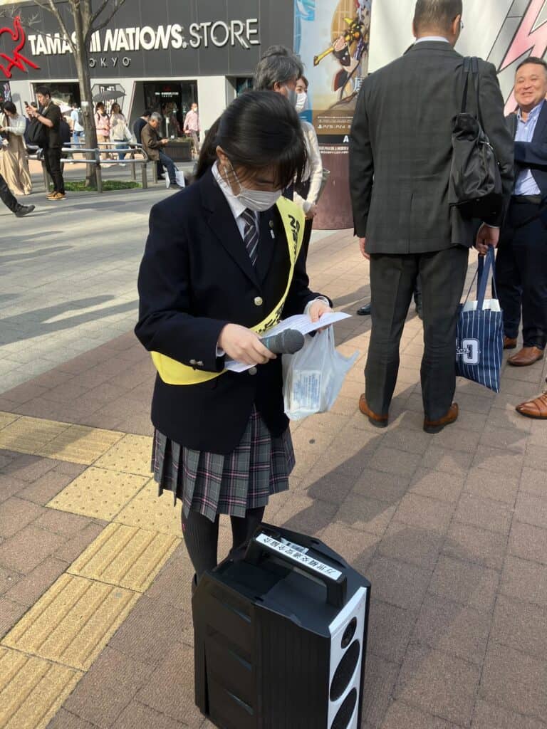 呼びかけとティッシュ配りでは、最初は緊張している様子でしたが、最後は堂々と行うことが出来ていました。