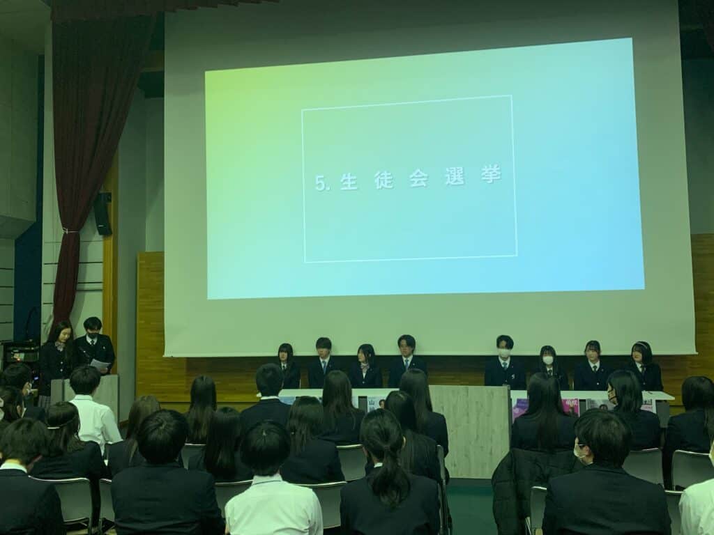 また、当日の運営は有志の生徒で構成された選挙管理委員が行いました。司会やタイムキーパー、会場設営など、滞りなく進行できるように務めてくれました。
