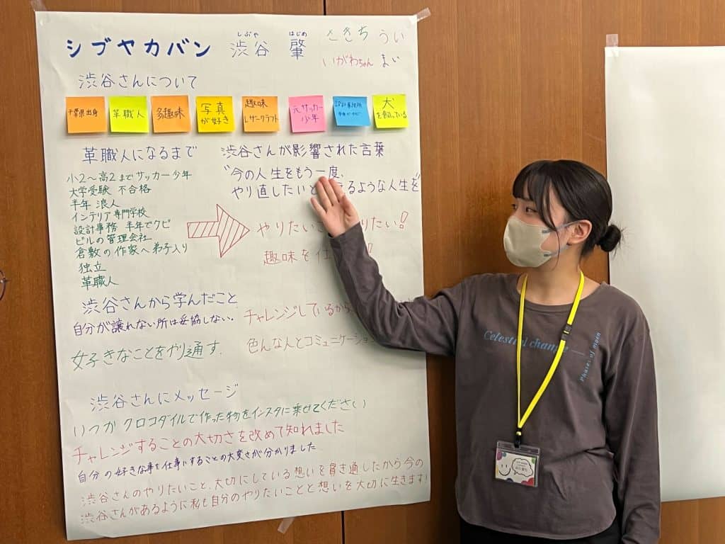 訪問した師匠から学んだことをグループ内で共有し、ポスターにまとめる活動を実施しました。各グループで付箋やペンを使いオリジナリティ溢れるポスターに仕上げました!短い時間での準備でしたが、精一杯頑張りました✨