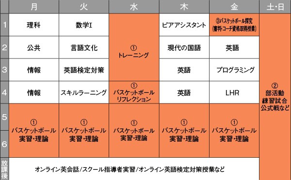 B.LEAGUE B1所属の「広島ドラゴンフライズ」と業務提携した高校レベルを超越した選手育成システムで、競技力を向上させ、ウインターカップ優勝を目指します!また、総合進学コースと同じ学習システムで「学力」と「非認知能力」を伸ばし、進路実現をします。スポーツ用品小売専門会社「(株)体育社」とも連携し、将来のキャリア形成も行います。そして、クラーク国際広島と広島ドラゴンフライズそれぞれの強みを生かした教育システムで、広島から世界で活躍できる人材(選手)を育成します。