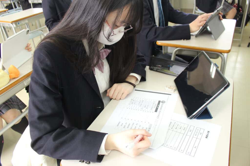 前半の家計管理については、まず自分たちの夢や目標、ほしいものなどについて考え、そこから自身の望みを叶えるためにはお金が必要であるということ、人生の三大資金などライフイベントで必要になるお金などについて家計管理の必要性を学びました。それから、一人暮らしをすることになったときの収支について、初任給の平均を収入として、実際に何にいくらかかるのか費目ごとの金額を考え、貯蓄のポイントなども学びました。インターネット検索などをしながら、支出の金額を知ることができた様子でした。