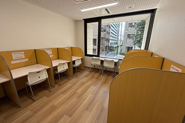 カウンセラーの先生との個別面談などを行います。個室でゆっくり相談が出来ます。