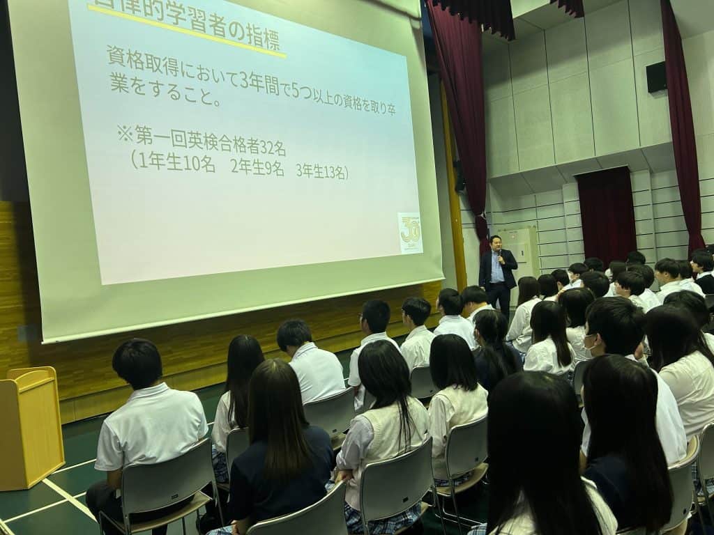 2年生は、学校生活にも慣れ、次は検定取得や、実行委員活動、ボランティアなど自分の強みをつくる活動をこの夏休みにどれだけ実施できるかで差がつきます。また進路に向けてオープンキャンパスにもたくさん参加してほしいということが話されました。