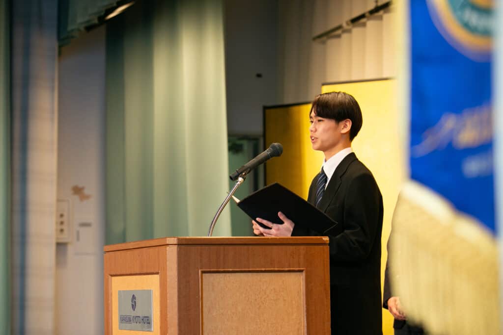 新入生を代表し、服部さんと橋本さんが挨拶をしました。これまでの自分の実体験での気づき、これからクラークで挑戦したいことを自信を持って話しました。これから同級生の仲間と共に、さまざまな挑戦をし、充実した青春の日々を過ごしてください!