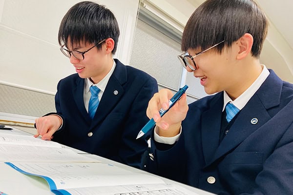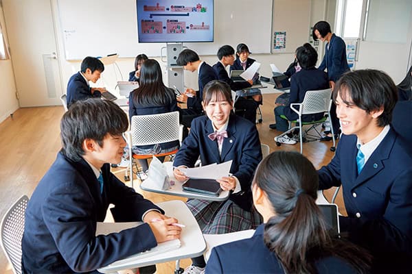 活動を通して得られた「疑問」や「気づき」に対し時間をかけて発掘していく「探究系授業」や自分の進路志望に応じた学びで学力UPを図る「学力向上授業」を行っています。仲間との協働的な学びによって興味関心を開拓し、論理的な思考力・表現力を身につけます。
