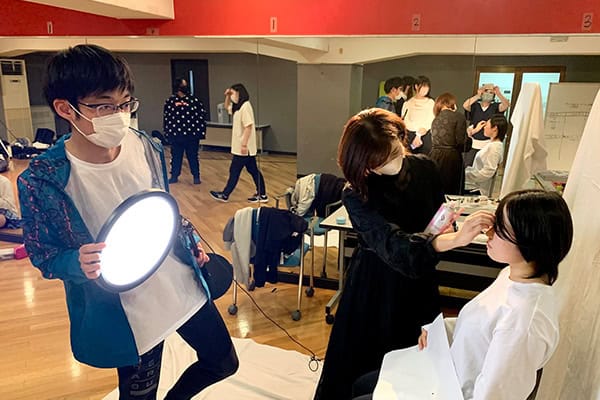 毎年恒例で開催している舞台演劇の自主公演。日々の演技指導や演出はもちろんプロの先生からですが、自主公演を開催するために照明、音響、舞台監督と多くのプロの方が関わります。本格的な舞台公演に来場者からの反響も高く、達成感を感じています。
