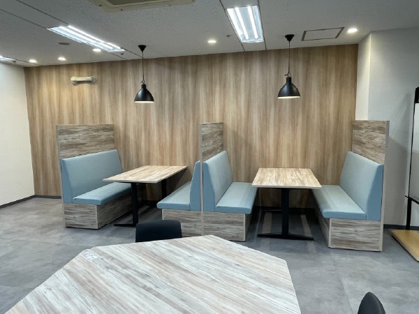 ゆったり座れるボックス席。お昼時には休憩スペースにも。