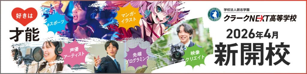 CLARK NEXT Akihabaraでは、eスポーツやデジタルクリエイティブ、声優・アートなど多様な分野に特化した学習環境を提供。生徒が自分の「好き」をとことん追求し、実践的なスキルを習得できる場です。