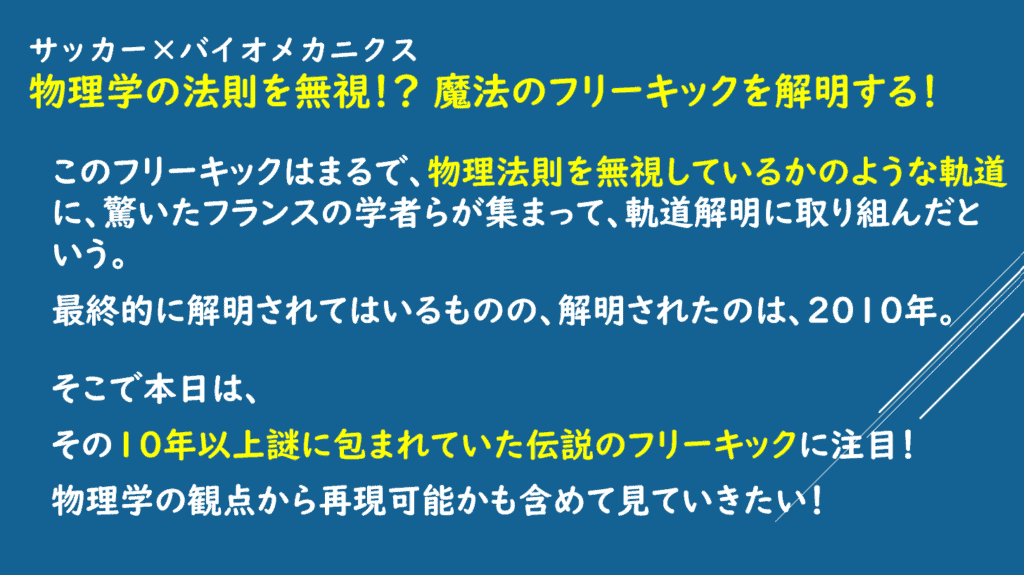 今回は、元ブラジル代表選手の魔法のフリーキックについて、物理学の視点で考察していきました!