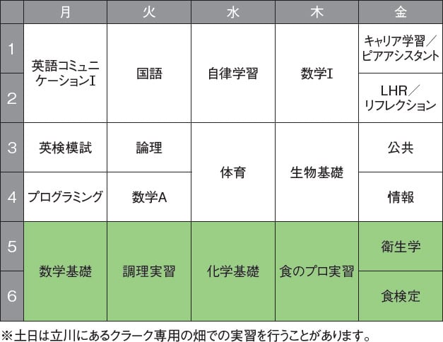 プロから学ぶ魚調理実習、調味料加工実習、農業実習を通して食と栄養の知識をつけ、大学進学を目指します。