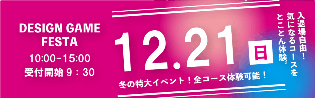 ※「デザインゲームフェスタ」に関しましては、入退場自由で複数のコースを体験できます。