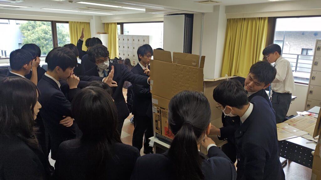 準備期間が昨年度よりも丸一日少なく、時間に追われる中で必死に大量のダンボールと格闘しなければなりません。