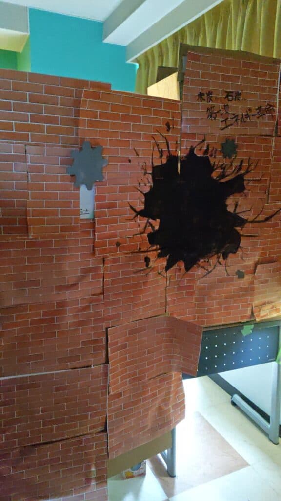 生徒たちは悲鳴をあげつつも互いに励ましあうと、非常な熱意によって休憩をも惜しむ突貫工事を成し遂げ、開展に漕ぎ着けました。