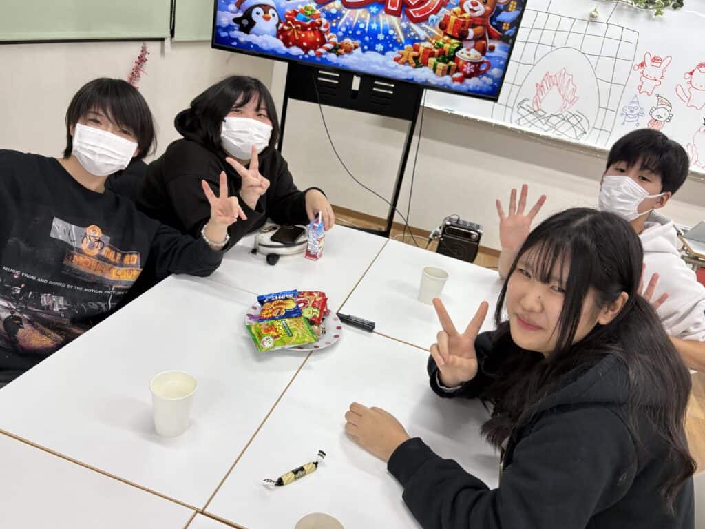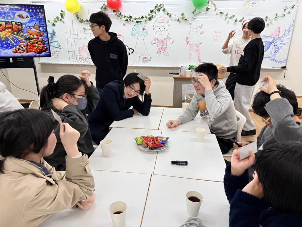 クラーク神戸三宮キャンパスでは、19日の全校集会の午後にクリスマスパーティーを実施しました。生徒会のメンバーが中心となり、学年を超えた繋がりを作ることを目的に企画してくれました。当日に至るまで、ゲームの内容を考えたり、装飾やポスター作製など様々な準備を頑張ってくれました。上手く準備が進まず頭を悩ませて時期もありましたが、当日はたくさんの生徒が参加し、ゲームもドッカンドッカン盛り上がりました。