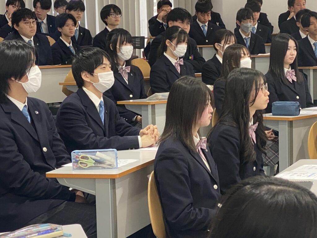 日本を取り巻く環境、進路先を決める時に考えなければいけないこと、高校卒業後に求められる能力、面接について、学校生活の過ごし方を具体をあげお話いただきました。