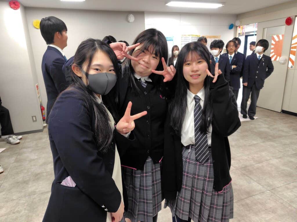 A1. とてもアットホームで先輩後輩、生徒先生同士とても仲が良く、明るい雰囲気がします。英検対策や共通テスト模試など勉強面でのサポートも手厚く、安心して勉強できる環境が整っています。分からない箇所があると先生が親身になって教えてくださり、分からないまま放置するということがないようになっています。また、行事も充実しており、クラス単位で動く体育祭・文化祭はとても盛り上がります。私のクラスの渡部クラスは今年度メイド喫茶をやり、一からフォトスポットを作ったり、当日先生がメイドの格好をしたりなど、とてもいい思い出になりました。