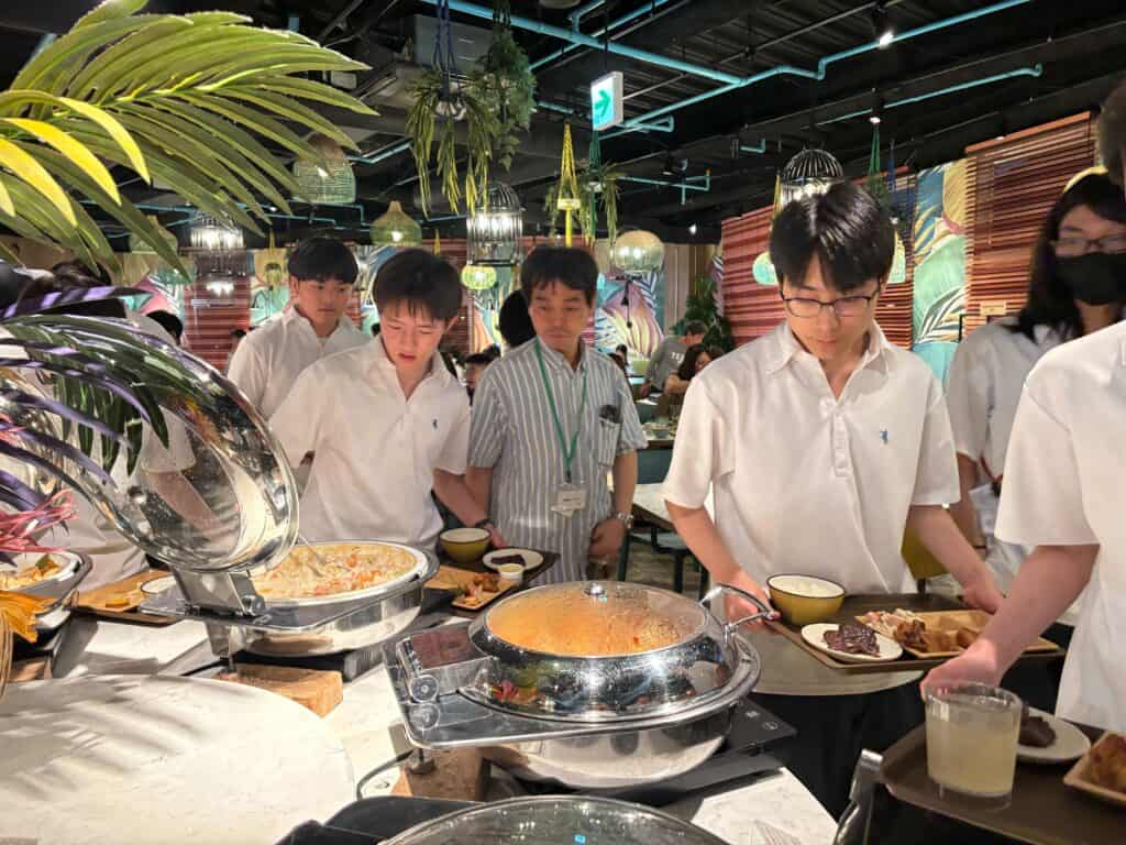 学びの時間の後には、仲間と食事を囲みながら、その日感じたことを話し合う姿も見られました。緊張していた出発時から少しずつ表情も和らぎ、仲間との時間を楽しむ様子も印象的でした。