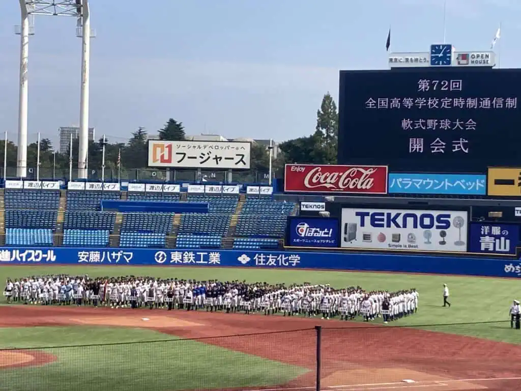 開会式は神宮球場で行われました!プロが使う球場に選手も興奮しながら参加しました!しかし…試合は別会場。式が終わるとすぐに移動です!この球場で試合をすることを目標に勝ち上がることはできるのか!?
