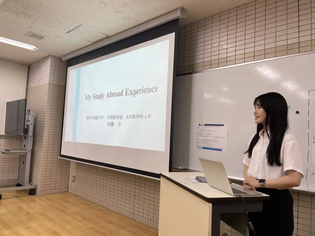 来校時には自身が通っている関西外国語大学での留学経験について話をしてくれました!