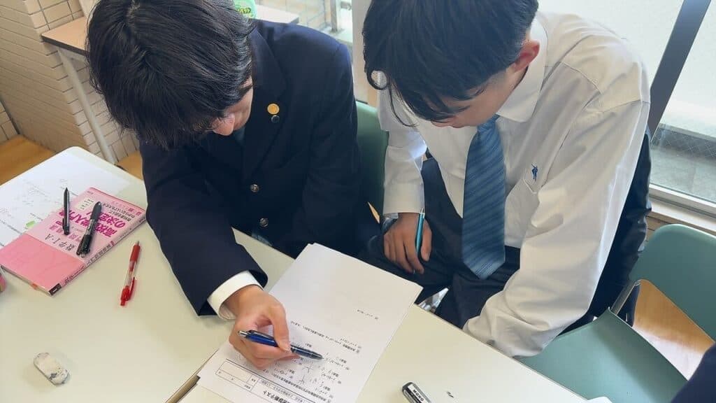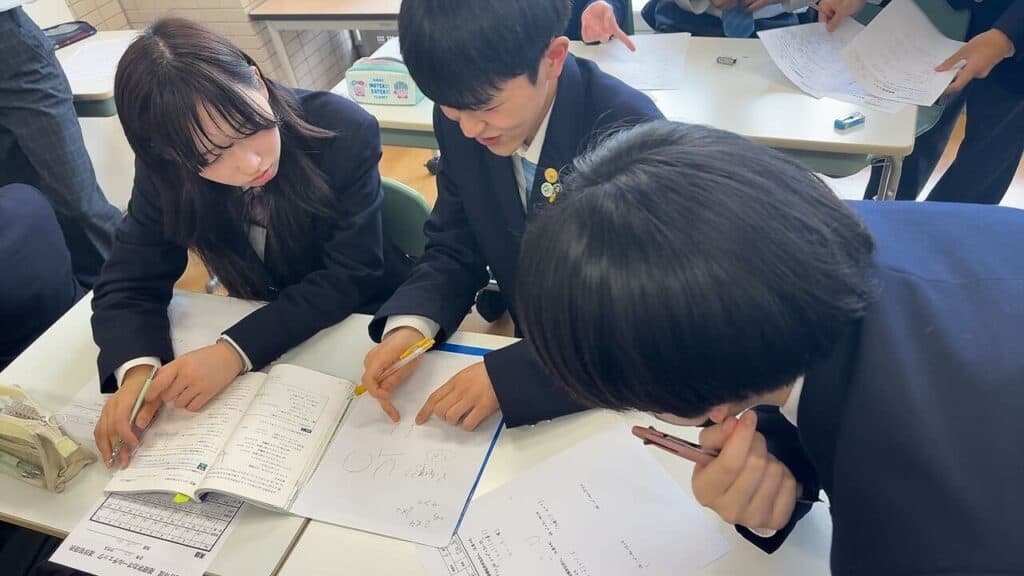 単なる振り返りにとどまらず、分からない部分は生徒同士で教え合う協働学習を取り入れながら、理解の定着を図りました。教える側にとっても学びを整理する機会となり、互いに学びを深める時間となりました。