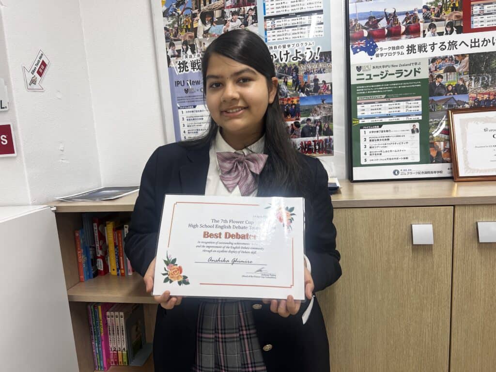 特に、部長のAnshika Ghimireさんが、ベストディベーター賞を受賞したことを心よりお祝い申し上げます。この素晴らしい成果は、優れたスピーチ力、的確な論理展開、そしてリーダーシップが高く評価されたものです。この受賞は本人にとって大きな栄誉であると同時に、チーム全体にとっても大きな励みとなりました。