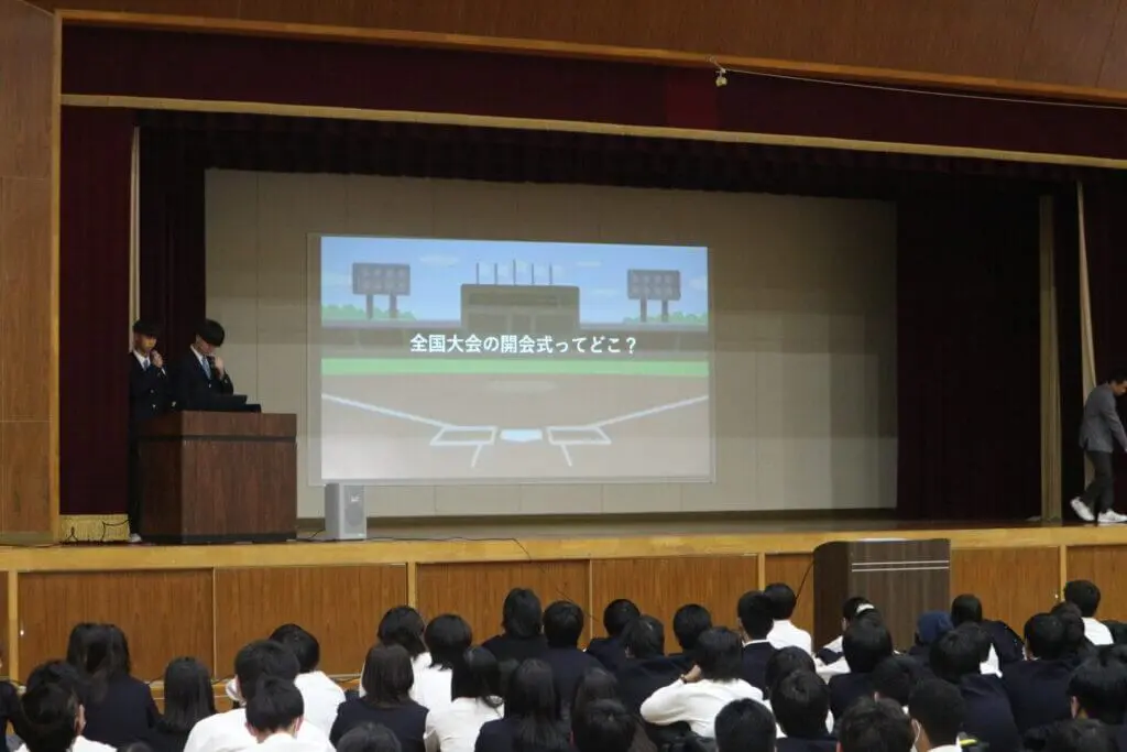 運動部として、軟式野球部、サッカー部、バスケットボール部、バレーボール部、卓球部、陸上競技部、eスポーツ部があります。さらに、文化部としては軽音楽部があります。そして、今年度から生徒会発案による部活である清掃部と報道部、学習室管理部がスタートします。そして、同好会も3つほど紹介されました。