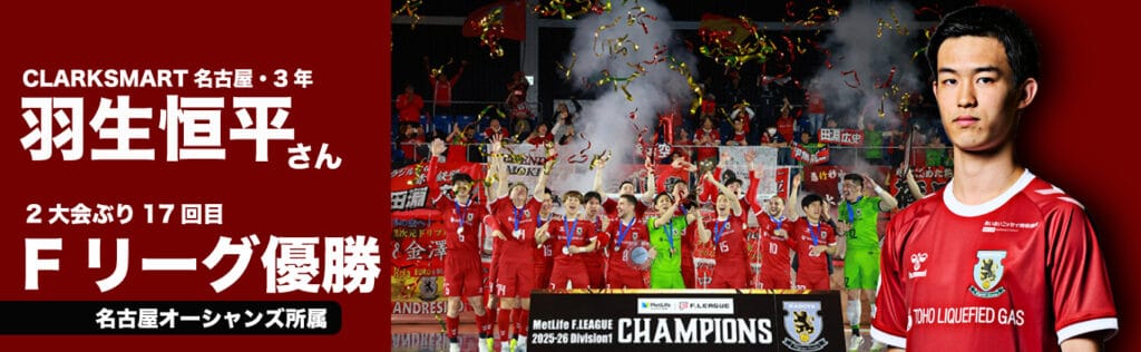 クラーク記念国際高等学校 SMART名古屋在籍の3年生・羽生恒平さんが所属する名古屋オーシャンズ が、Fリーグ ファイナルシーズンにおいて、2年ぶり17回目となるリーグ優勝を達成いたしました。