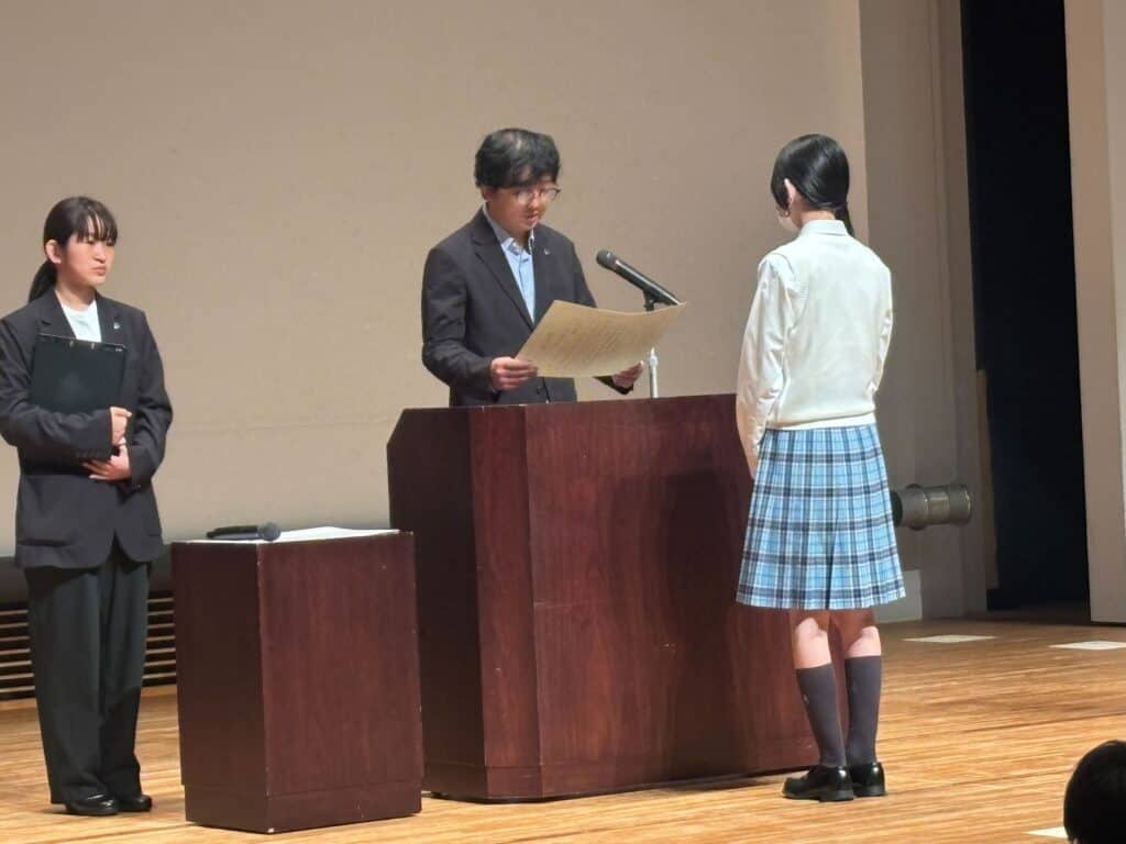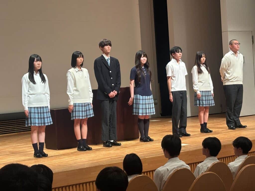 続く生徒会任命式では、新役員が壇上で順番に紹介され、代表者による決意表明が行われました。代表生徒は「後期は生徒同士のつながりを大切にし、学校全体が前向きに成長できるような活動をしていきたい」と力強く語り、会場全体がその意気込みに引き込まれる場面もありました。