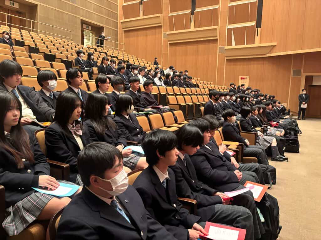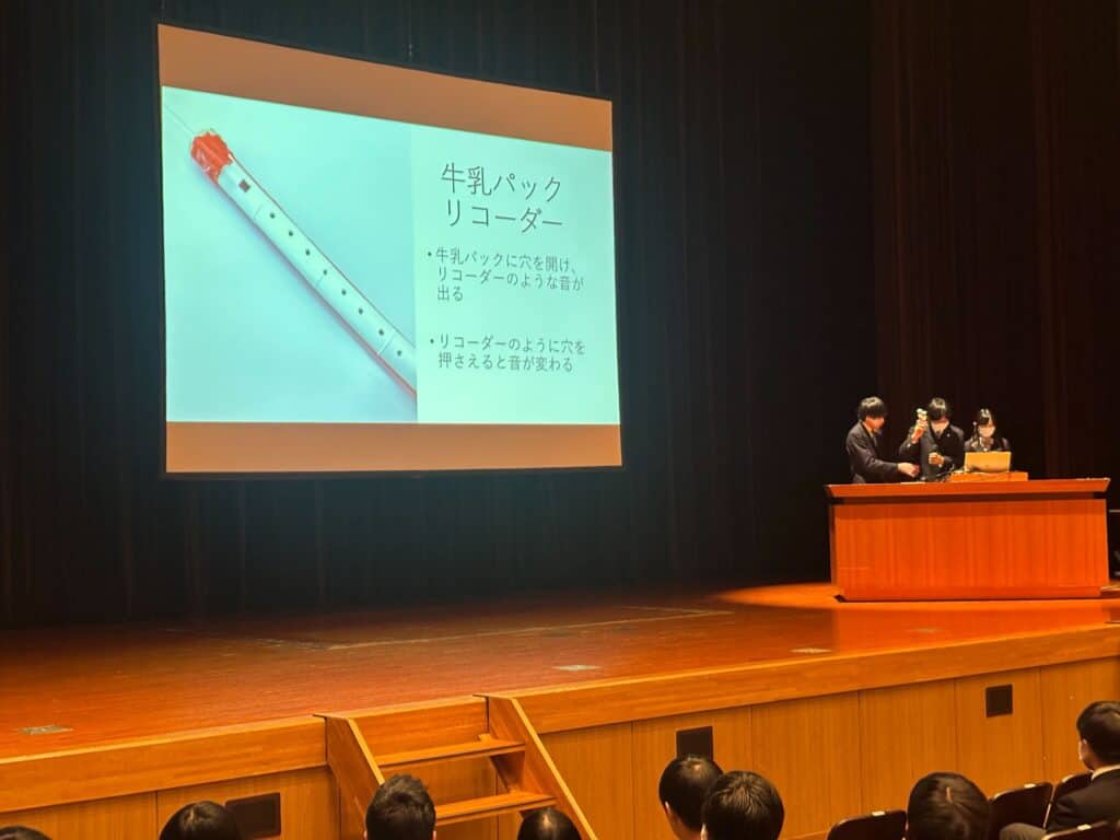 午前中は、毎週水曜日に実施している地域連携PBL(課題解決型学習)の発表が行われました。生徒たちは一年間かけて設定したテーマについて、地域や社会と向き合いながら探究を深めてきました。当日は、課題設定の背景、調査や試行錯誤の過程、得られた成果を、自分たちの言葉で堂々と発表する姿が印象的でした。
