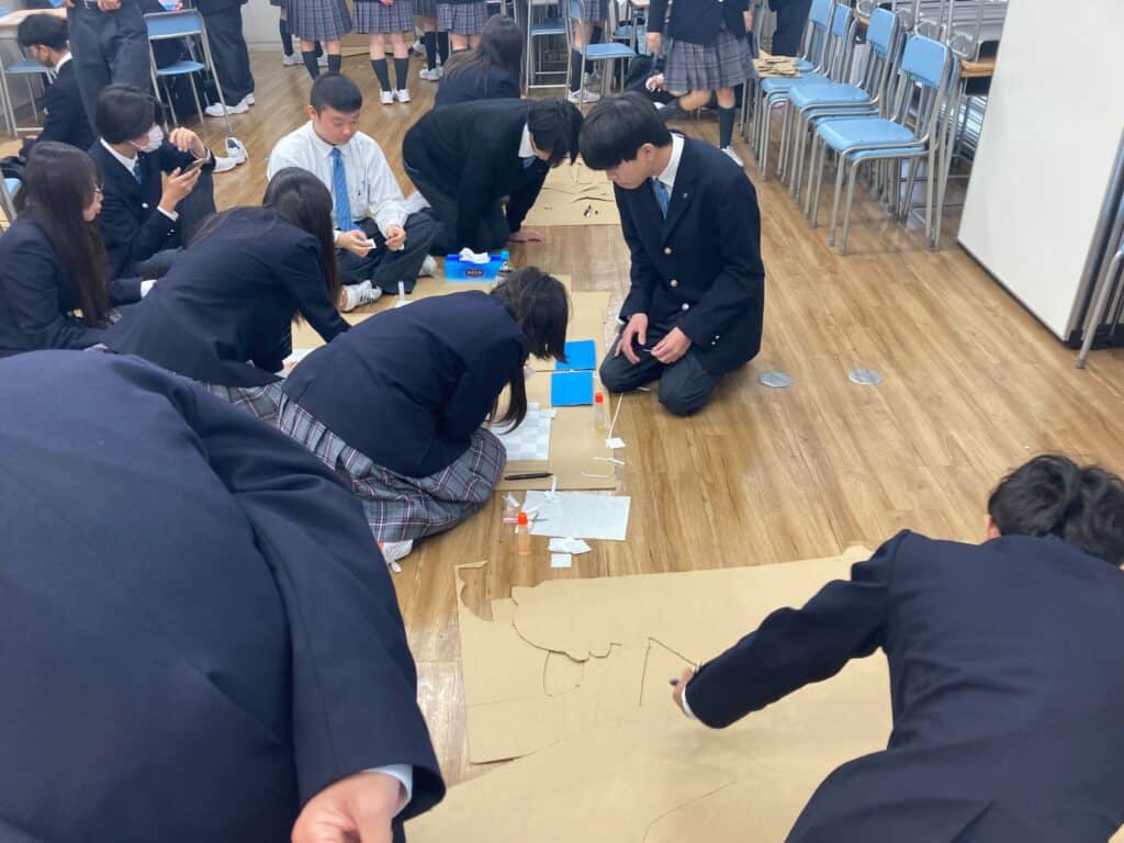 翌日は新入生歓迎会!!全校で巨大紙相撲作りを行いました!!