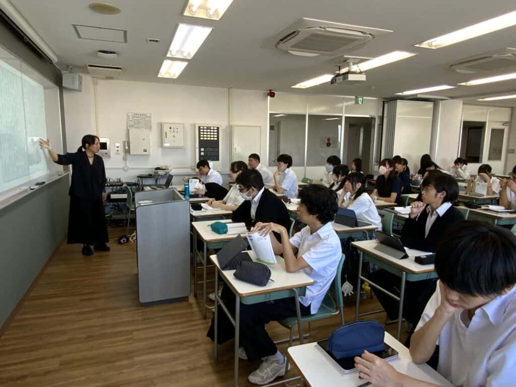 授業の後半では、「もし自分が登場人物の立場だったらどう行動するか」「現代にも通じる考え方はあるか」といった問いを通して、生徒一人ひとりが自分の言葉で作品を解釈しました。作品の理解を深めるとともに、他者の考えを尊重しながら意見を交わす時間にもなりました。