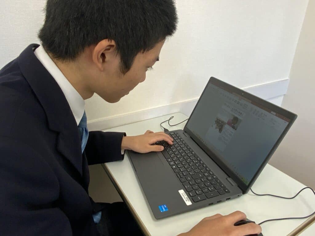 学びの後半では、文化祭をテーマにキャンパス通信用の記事を作成しました。読者を想定し、どの場面を選び、どの言葉で伝えるかを考えながら文章を構成することで、生徒は“発信者としての責任と表現の工夫”を体験することができました。