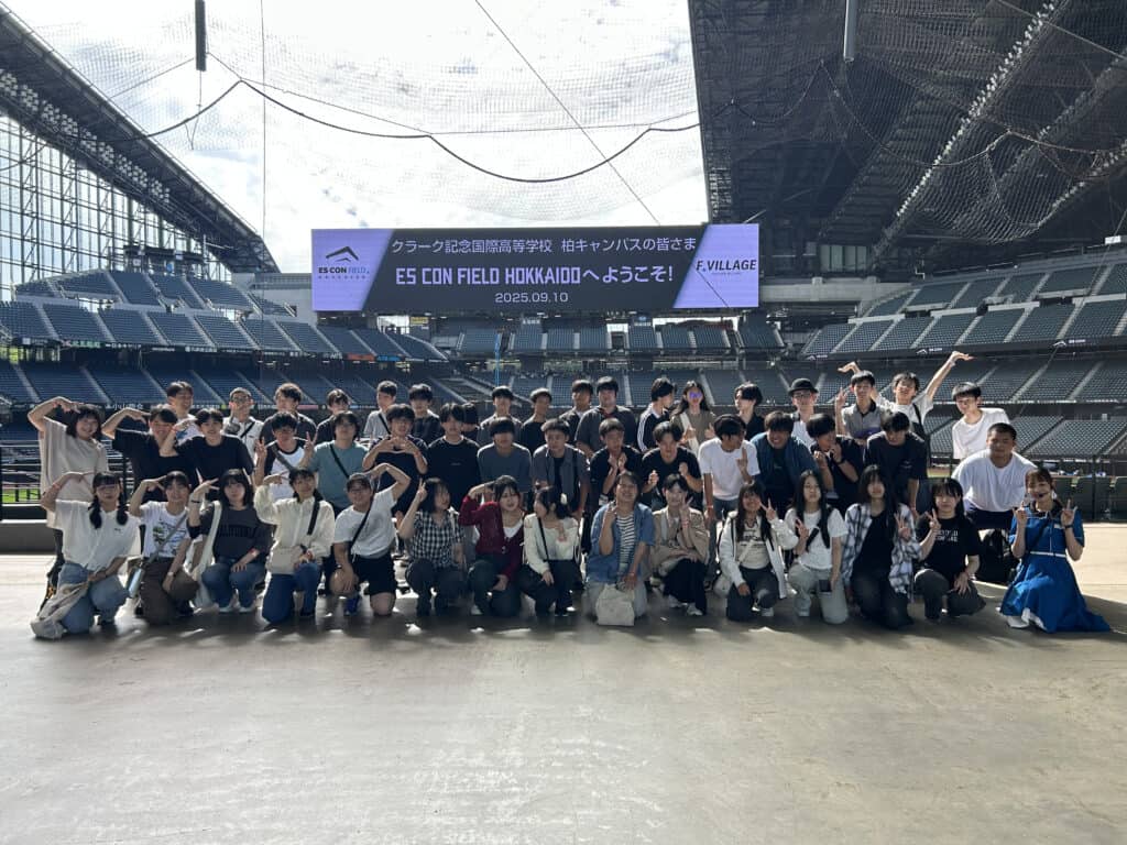 午前中はエスコンフィールド北海道にて、ベーシックスタジオツアーを体験。最新のスタジアム設備や舞台裏を見学し、野球ファンはもちろんのこと、スポーツに関心のある生徒にとって貴重な学びの時間となりました。