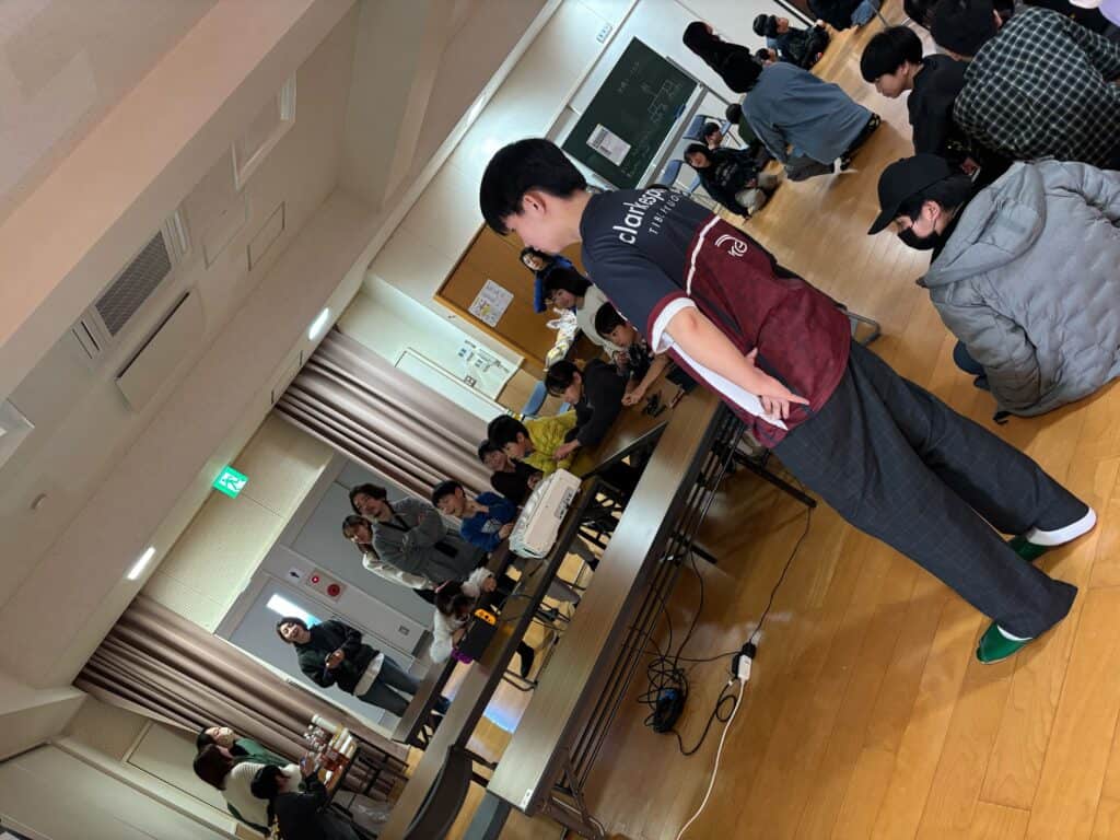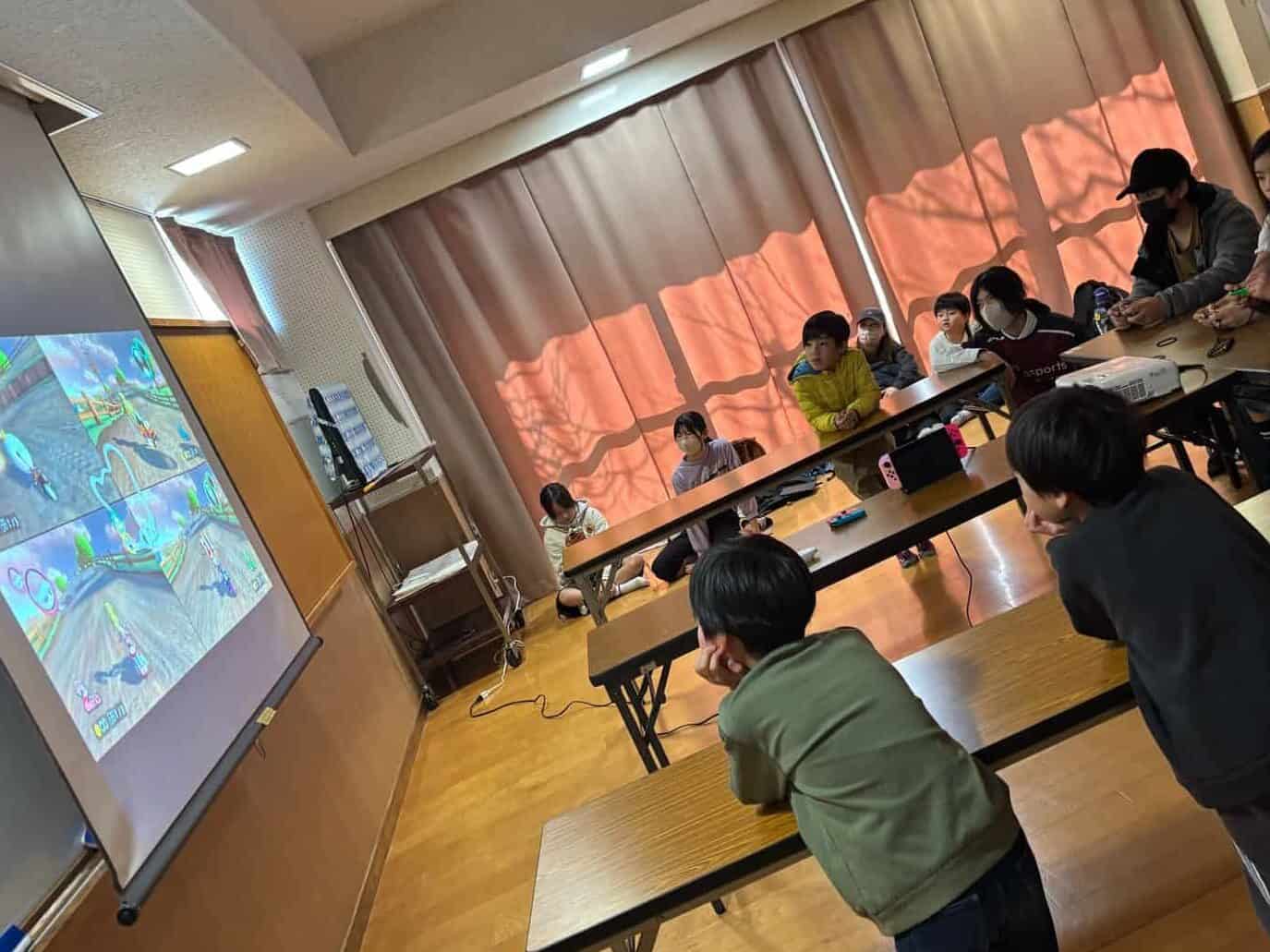 当日は小中学生約40名が出場し、約10名の保護者の皆さまが主体となって運営される地域大会。生徒たちは会場セッティングから機材準備、子どもたちへの操作説明、進行サポートまで幅広く担当しました。初めてコントローラーを握る子どもにも目線を合わせて丁寧に声をかける姿は、まさに“学びの成果”そのものでした。
