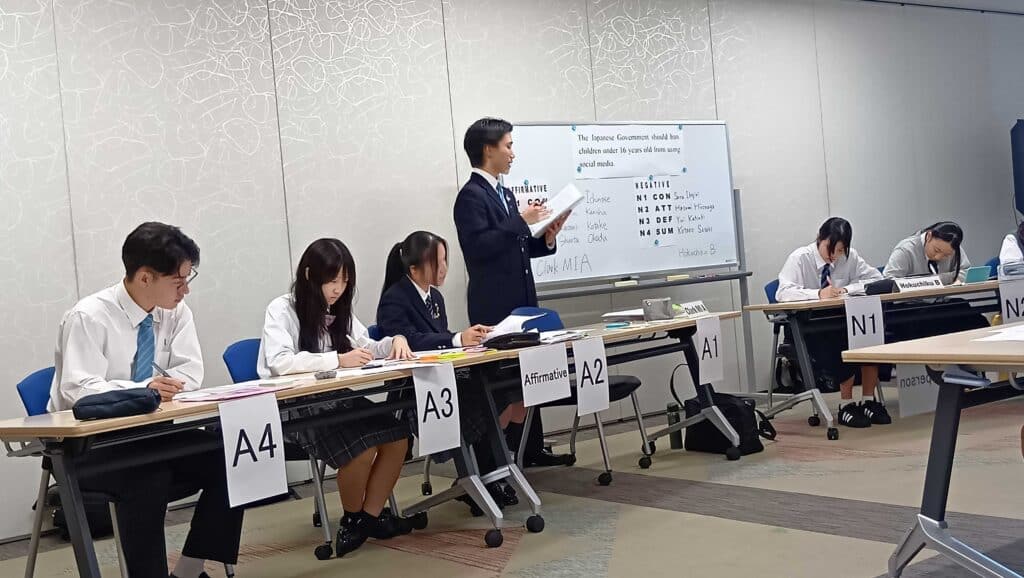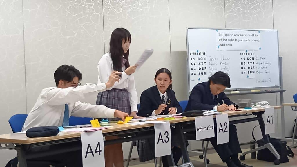 試合ごとに肯定側・否定側に分かれ、立論・反論・再構築・まとめの4つの役割を担いながら、ジャッジを説得する英語での論戦が繰り広げられました。