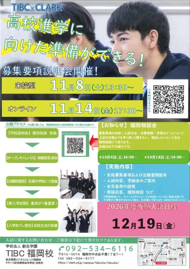 【令和8年度新入学試験】募集要項説明・出願書類配布会を実施します。 対面、オンライン、で実施~専願入試は10月16日、12月19日