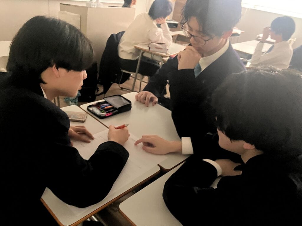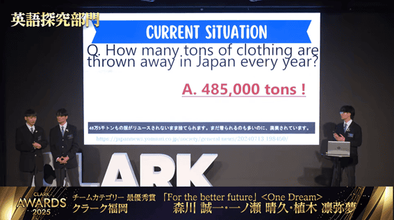 また今回の大会には、福岡キャンパスからも3名の生徒がチームで出場し、英語探究部門に挑戦しました。英語で自らの探究内容を発表する姿は堂々としており、これまで積み重ねてきた努力の成果が存分に発揮されていました。身近な先輩が全国の舞台で発表する姿は、視聴している在校生にとっても大きな刺激となりました。
