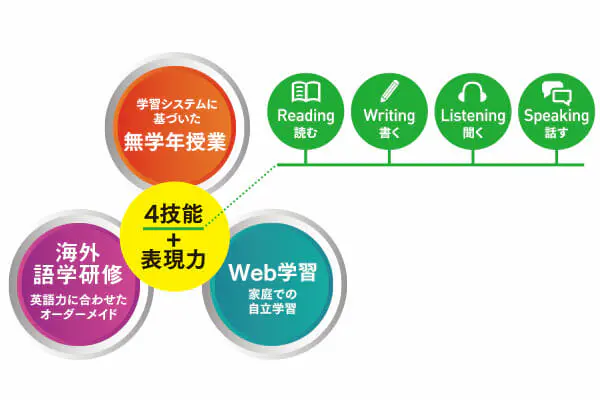 学年に関係なく、英語レベルに合わせた習熟度別授業を展開しています。少人数制なので、発言の機会も多く、一人ひとりの能力を伸ばせる環境が整っています。