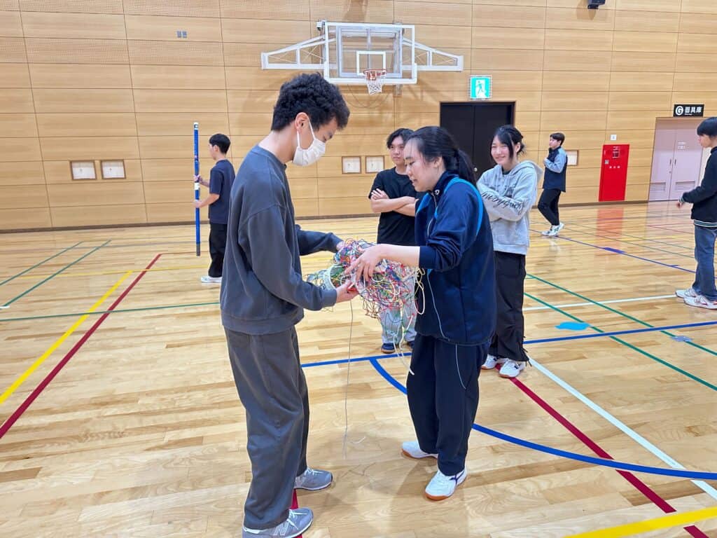 3年生同様、まずはしっかりと準備運動を行い、その後バレーボールやバドミントンなど、学年の枠をこえて協力しながら楽しめる種目に挑戦しました。バドミントンを初めてやる生徒もいたようですが、友達に教えてもらいながら積極的にチャレンジする姿が印象的でした🔥✨