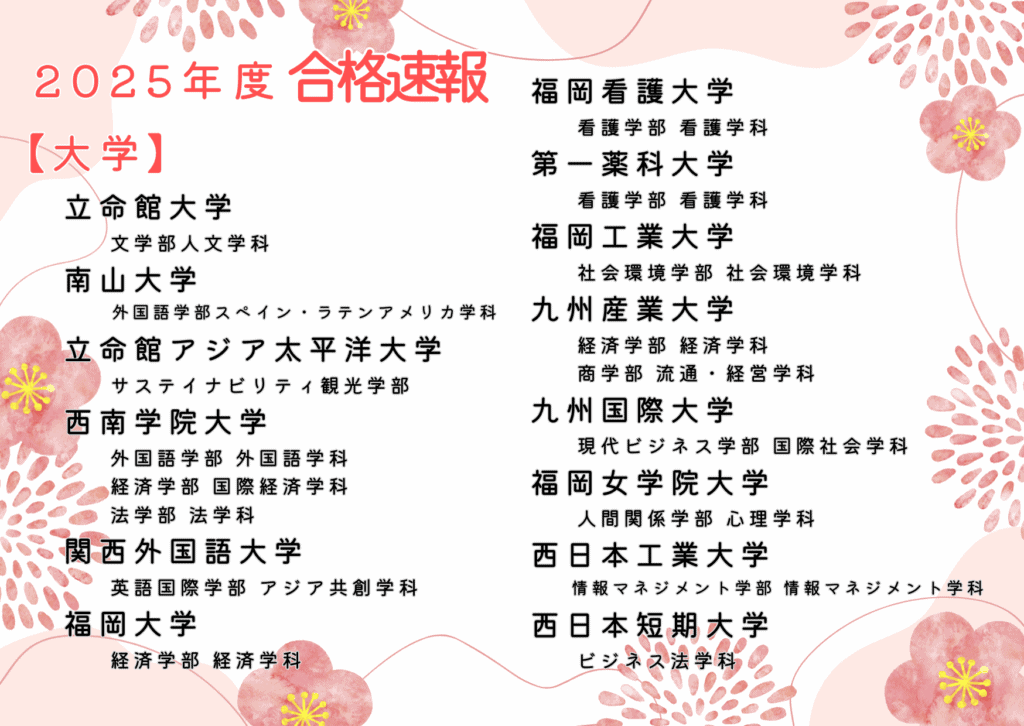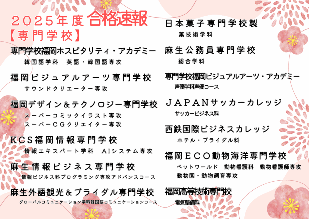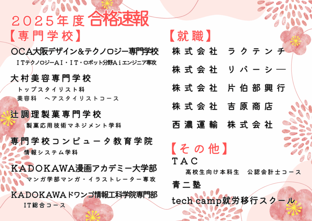 🌸多くの大学・専門学校・企業から合格・内定をいただきました🌸