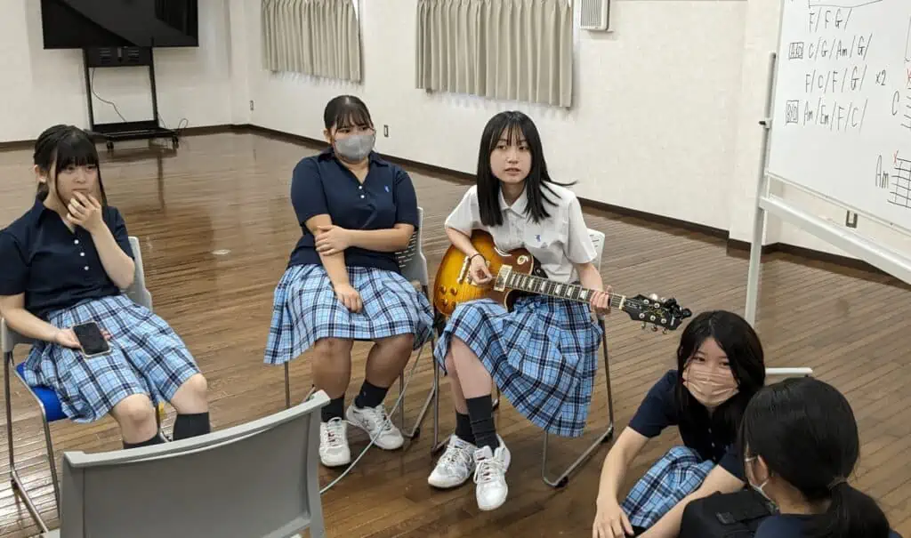 【部活動】軽音楽部はじまりました! 2023 7/26 アルバム お知らせ 学校行事 学習・教育 2023年7月26日 クラーク国際・岐阜キャンパスに新たな部活動「軽音楽部」がスタートしました!キャンパス長の横田先生が呼びかけて、「やりたい!」と集まった5人の生徒が楽器のパートや曲目を決めて今日が記念すべき(!)第一回ミーティングです。初心者が中心のガールズバンドです!成果発表会や文化祭などで披露できるように楽しく活動をしていきたいと抱負を語ってくれました。 \ 岐阜キャンパスの最新情報 / 岐阜キャンパスへ戻る アルバム お知らせ 学校行事 学習・教育 URLをコピーしました! 関連記事 【学習】定期試験で実力を発揮 2025年12月13日 【教育】第二期生徒会始動! 2025年12月12日 【行事】シライシアターとして「映画鑑賞」で主体性を磨く 2025年12月11日 【行事】クリスマスツリー点灯式と前生徒会 2025年12月8日 【学習】体育で卓球やバドミントンにチャレンジ 2025年12月5日 【学習】国語表現で「表現力」を育成 2025年12月1日 【探求】地域連携探求学習 2025年11月29日 【学習】クラーク中等部「オンライン文化祭」で大活躍! 2025年11月28日