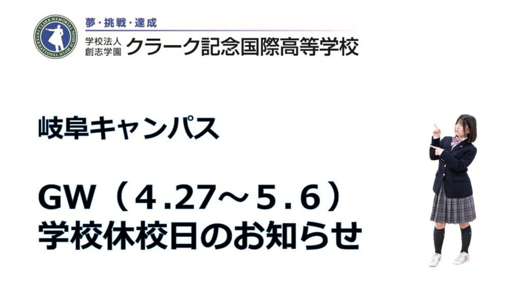 本校では下記日程をゴールデンウィーク休業とさせていただきます。
