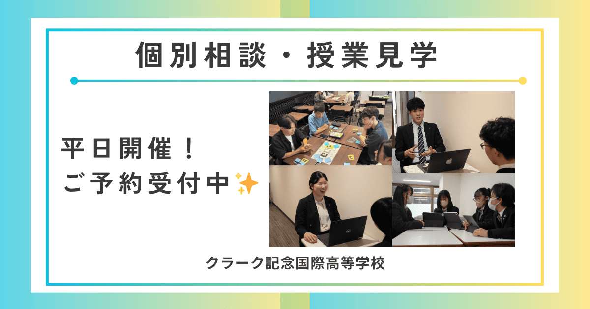 【中学3年生対象学校説明会】今年度終了、個別相談のご予約受付中! | クラーク記念国際高等学校