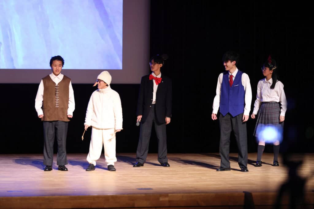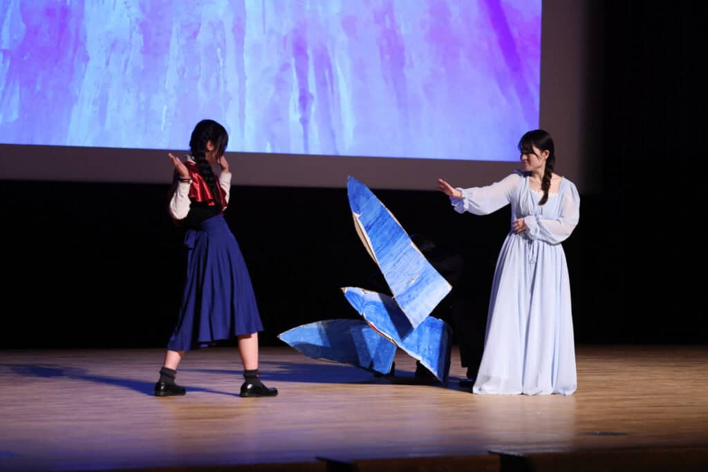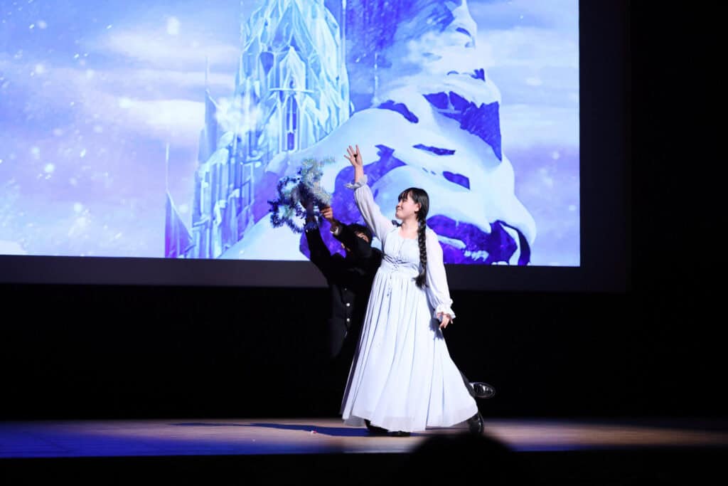 生徒が描いたイラストナレーションとともに「アナと雪の女王」のストーリーが始まります!本格的なオープニングに会場も盛り上がりました