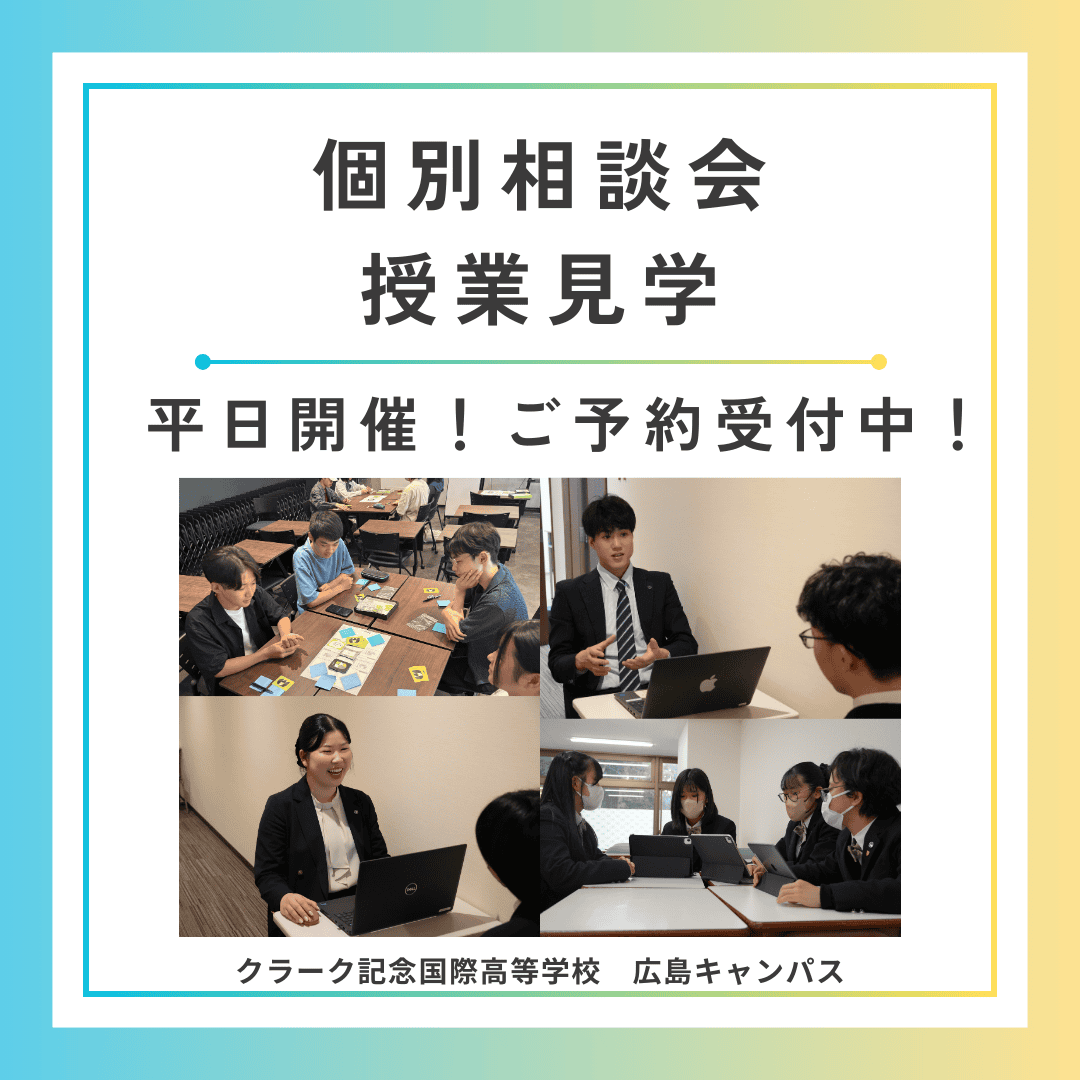 引き続き、平日の個別相談と、中学校1・2年生対象の学校説明会は実施中です!どちらも事前予約制となっております。下記よりお申込みください✨
