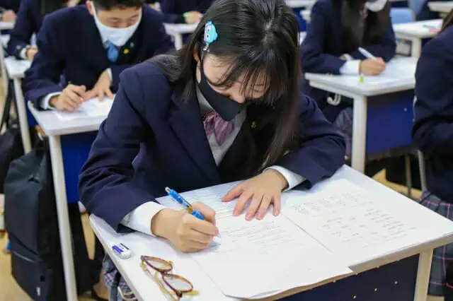受験科目は英語・国語・数学の3科目で受験レベルは5段階に分かれており、各レベルがそれぞれの検定の級に合わせた試験内容になっています。そしてクラーク国際全体で一斉に自分に合ったレベルの学力試験に臨みました。