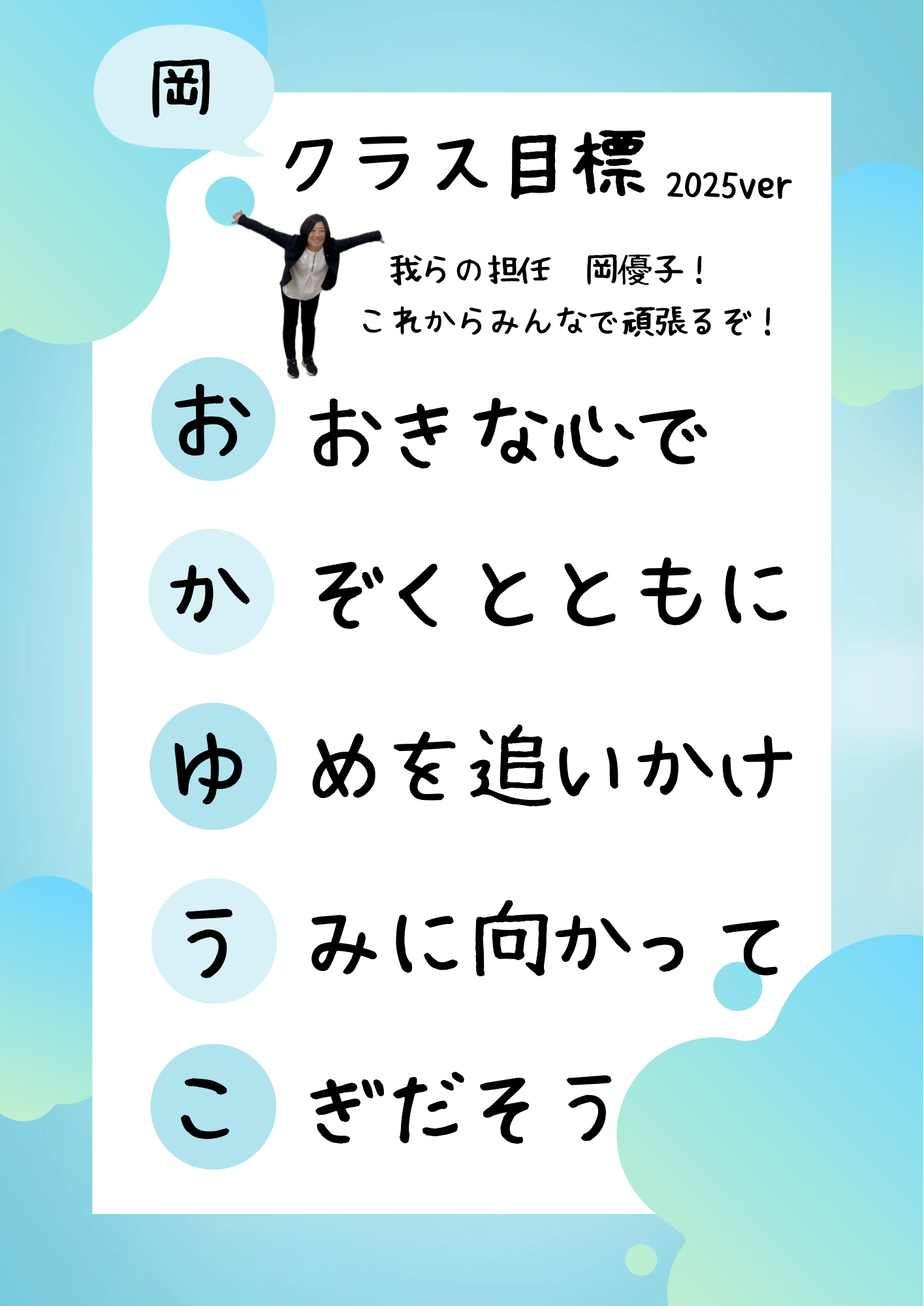 岡クラスでは、年度初めにクラス目標をみんなで考えました。