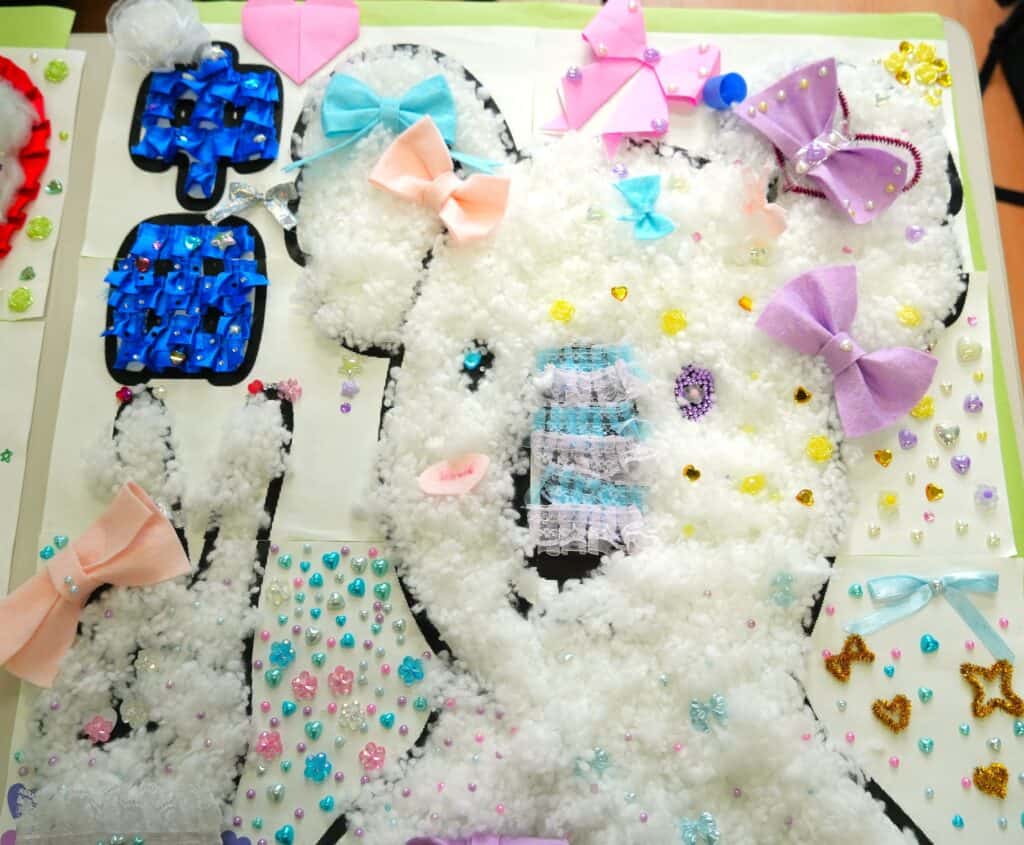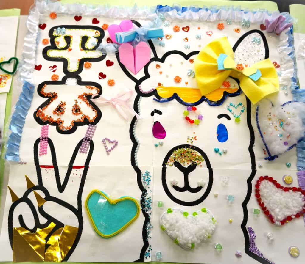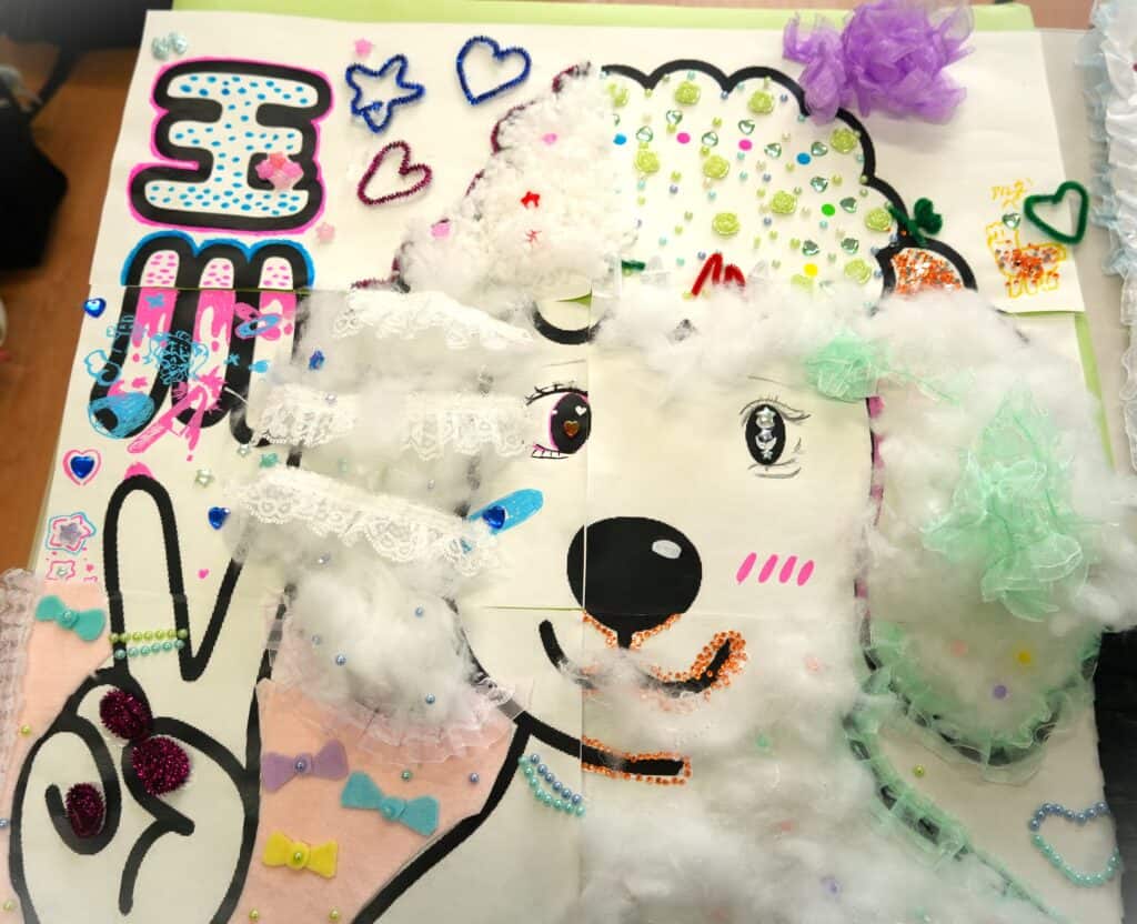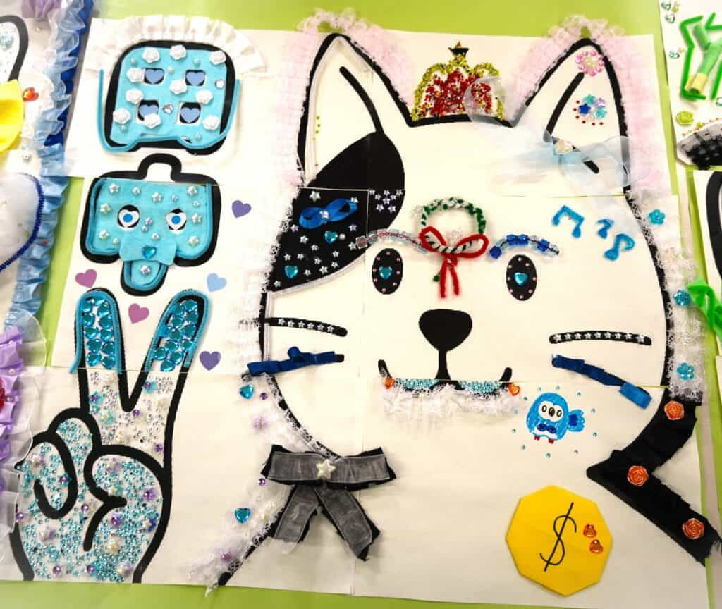 このパビリオンでは、「様々なものをデコる」ということをテーマにしながら、担任の先生が選んだ動物の絵をデコりました!