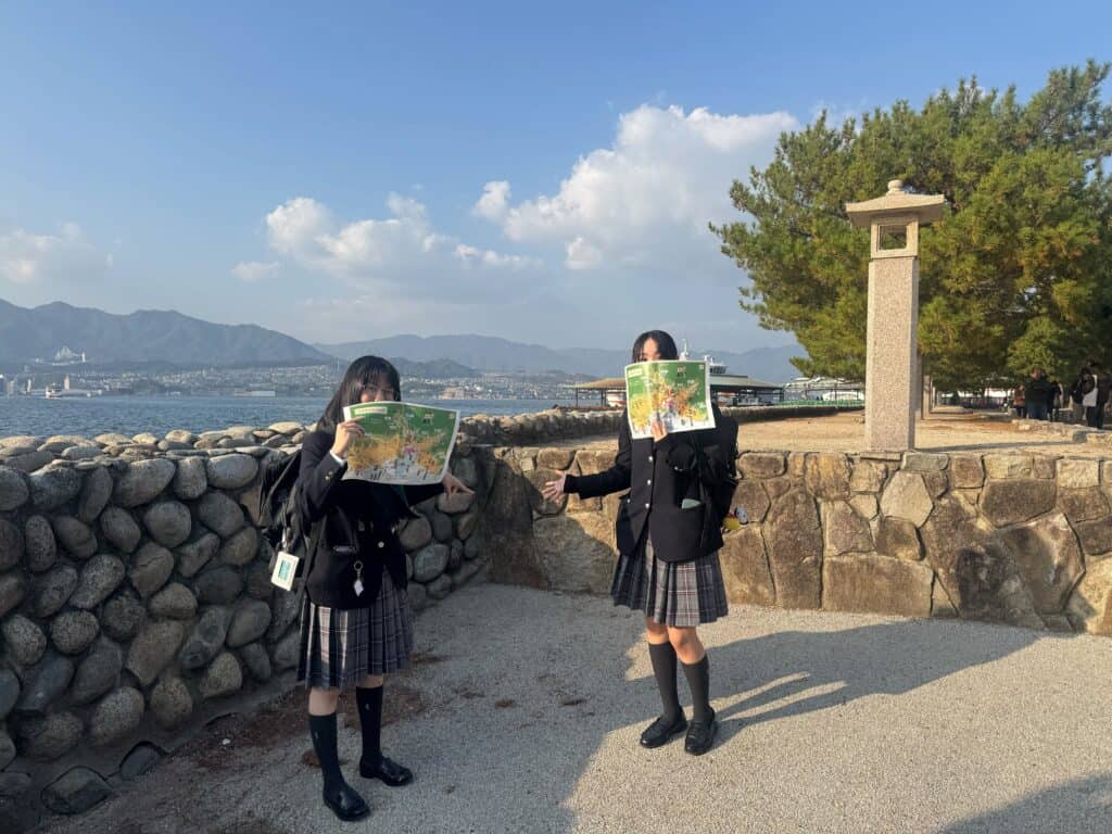 他のクラスの生徒たちは、事前に決めたグループごとに行動し、配布されたマップを参考にしながらクイズラリーに挑戦したり、指定された場所で写真撮影をしたりと、楽しみながら宮島の魅力にふれることができました!