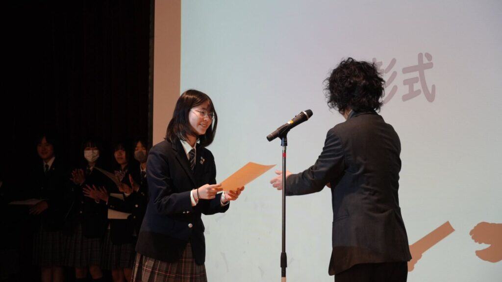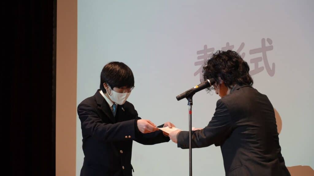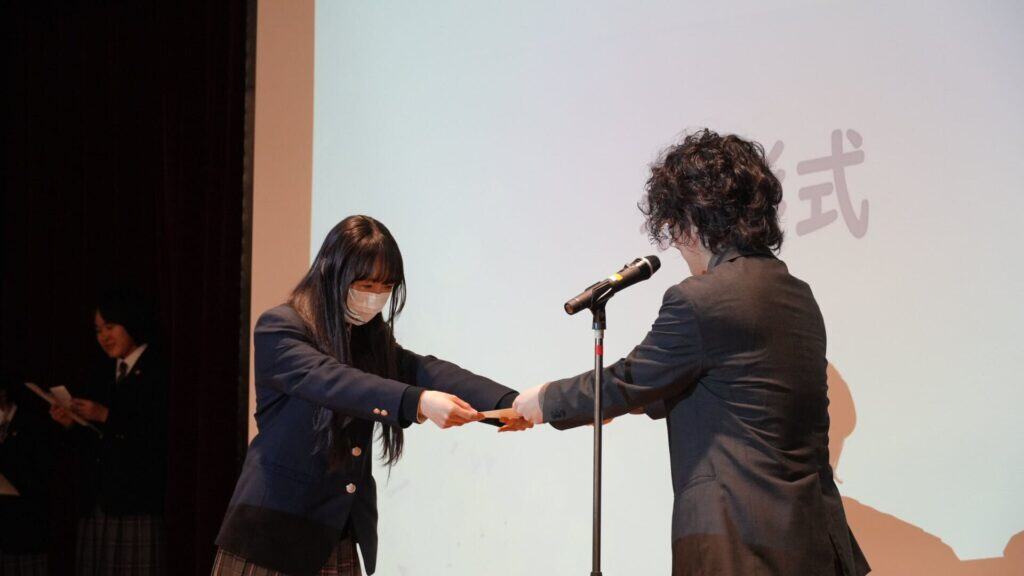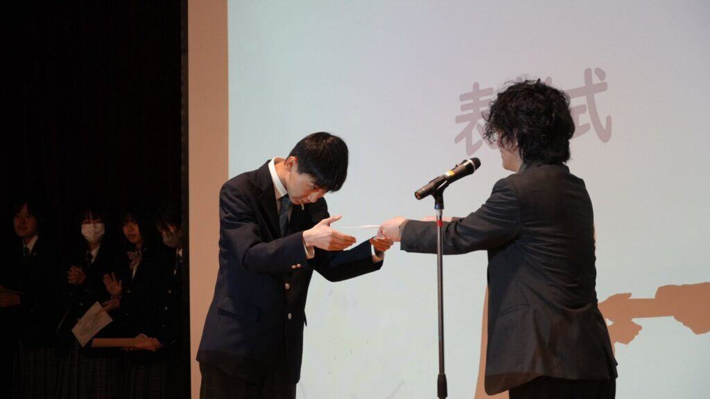 一人ひとり、壇上でキャンパス長から表彰状や副賞を受け取りました🏅